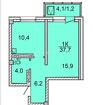 Продам квартиру в новостройке1-к квартира 37 м² на 15 этаже 24-этажного кирпичного дома